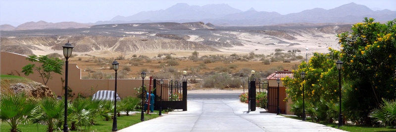 Bliżej nieokreślona dzielnica Kairu. Przeglądając katalogi biur podróży z propozycjami na Royal Braykę, Itaka okazała się mieć najtańszą ofertę, więc przynajmniej w tym temacie nie było żadnych dylematów. Trochę martwił wylot o 22, ale jeśli o to chodzi, nie mieliśmy wyboru. Na dwa dni przed dostaliśmy telefon z centrali, że nasz lot będzie przyśpieszony o 2 godziny. To była bardzo dobra wiadomość. No i tak też się stało - wystartowaliśmy z Okęcia Boeingiem 737-800 tuż przed ósmą wieczorem, na pokładzie zawitał prawie komplet pasażerów, wolnych zostało tylko kilkanaście miejsc. Lot nocą nie wniósł nic ciekawego do podróży, dopiero roziskrzony pod samolotem 25 milionowy Kair wyrwał część ludzi ze snu. Jeszcze niecała godzina lotu (w sumie trochę ponad cztery) i lądujemy w Marsa Alam. Temperatura w nocy powyżej 30 stopni daje przedsmak tego, co będzie w dzień... :-) Lotnisko jest bardzo małe, sala przylotów w ogóle sprawia wrażenie dworca autobusowego w Wygwizdowie Leśnym. Okienko po wizę (15$) otwarte jedno, więc kolejka robi się nieprzyzwoicie długa. W końcu jednak wszystkie formalności udaje się załatwić, odbieramy niezagubione bagaże, spotykamy rezydenta Itaki, który kieruje nas do właściwego autobusu i po chwili ruszamy do naszego hotelu... 40 minut jazdy przez pustynię wystarcza, żebyśmy w końcu zobaczyli na własne oczy nasz ciężko wybrany hotel...