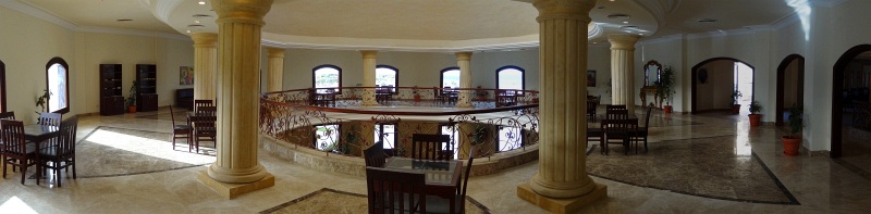Wyjazd z hotelu. Recepcja hotelu może lekko rozczarowywać, zwłaszcza, jak się ją porówna do tej z Titanic Beach w Hurghadzie, ale przecież to tylko miejsce przejściowe... Już w drzwiach mój organizm sygnalizuje, że chyba coś się stało z klimatyzacją, bo zupełnie nie czuć efektów jej działania (być może była wyłączana tylko na noc, bo w dzień w recepcji było chłodniej). Wzorem z lotniska trzeba uzupełnić jakiś kwit... z wypełnionym ustawiamy się w kolejkę po kartę pokoju. Tu w pewnym momencie przemiły recepcjonista (świat byłby weselszy i piękniejszy, gdyby tylko tacy ludzie pracowali) na głos oznajmia, żebyśmy nie prosili o lepsze pokoje ani nie wkladali $ do paszportów, bo... wszyscy dostaną dobre pokoje :-) No zobaczymy... Miłym akcentem na powitanie jest otwarta specjalnie dla nas restauracja (normalnie czynna tylko do 22) - wybór jedzenia o tej porze co prawda bardzo skromny, ale dla tych co nie mogą zasnąć z pustym żołądkiem, może okazać się to bezcenne...