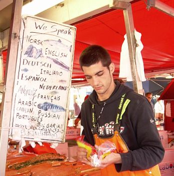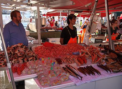 A na targu można kupić chyba wszystko, co pochodzi z morza - świeżo złowione ryby, które jeszcze przed godziną pływały w fiordzie, ich wędzeni