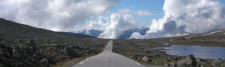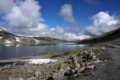 zalega na jej poboczach nawet jeszcze w środku lata. Wjazd zaczynamy od strony Laerdal w dolinie Erdalen i powoli wspinamy