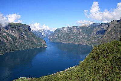 umiejscowionej około 650 metrów nad Aurlanfjord. Rozpościera się stąd wspaniały widok na fiord, a także położone poniżej miasteczko Aurland.