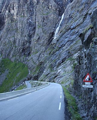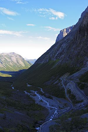 i dalej przez Valldal do Andalsnes. Fragment drogi przed Andalsnes to właśnie Trollstigen. Droga w tym