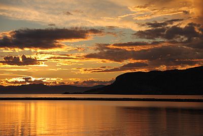 Z miasta wyjeżdżamy około 21. Droga ciągnie się wzdłuż Trondheinfjord, nad wodą wiszą bajecznie oświetlone