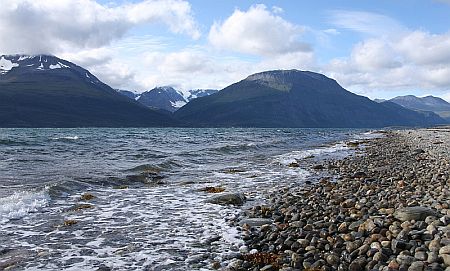 szereg zatok i odgałęzień fiordów. Zwłaszcza jeden objazd utkwił mi w pamięci. W linii prostej przez fiord w kierunku miasteczka Olderdalen