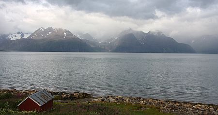 pada przelotny deszcz. Ale im bliżej jesteśmy Narviku, tym więcej jasnego nieba. Oto i cała Norwegia, nigdy nie wiesz co cię czeka