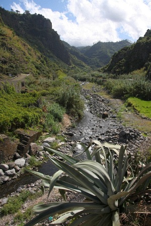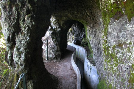 Ścieżka Levady do Furado. Dlaczego o tym wszystkim napisałem? Ano dlatego, że z Ribeiro Frio odchodzi jedna z fajniejszych levad na wyspie (ale te dzikie tłumy wcale na nią nie chciały wejść, więc pytanie dalej jest aktualne). Drugi koniec levady to Portela, a odległość do przebycia to 11 km. o różnicy wzniesień ponad 300 metrów (jeśli to komuś robi różnicę, to Portela leży niżej). Problemem w przypadku tej levady są inne miejsca startu i mety. Myśmy to rozwiązali w ten sposób, że z rana samochodem pojechaliśmy do Porteli i tam zaparkowaliśmy auto. Od 10 rano zaczynają się na punkcie widokowym w Porteli pojawiać licencjonowane, żółte taksówki. Pierwszą, która przyjechała, przetransportowaliśmy się do Ribeiro Frio i stamtąd levadą zeszliśmy z powrotem do Porteli. W ten sposób uniknęliśmy problemu z zaparkowaniem auta, szliśmy w dół i od razu po zejściu mieliśmy do dyspozycji własny samochód. Co się zaś tyczy samego przejazdu, kierowca na próbę obniżenia ceny pozostał głuchy i jechaliśmy normalnie na włączonym taksometrze (z ustawioną, o ile dobrze pamiętam, 4 strefą taryfową). Licznik nabił trochę ponad 25 euro i zgadzało się to prawie dokładnie z tym, co wcześniej usłyszeliśmy w odpowiedzi na pytanie - a za ile... :-)