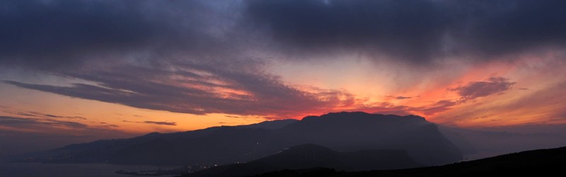 Zachód słońca nad Maderą widziany z São Lourenço. Innym, ciekawym fragmentem wschodniego wybrzeża jest tzw. Orla Skała (Penha de Águia). Odziela ona Miejscowość Faial od Porto da Cruz i wznosi się na wysokość 590 m.n.p.m. Jeśli chcemy ją zobaczyć z oddali na tle Porto da Cruz, najlepszym chyba miejscem do tego będzie punkt widokowy Portela położony na południe od miasteczka.