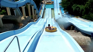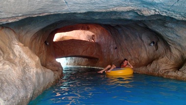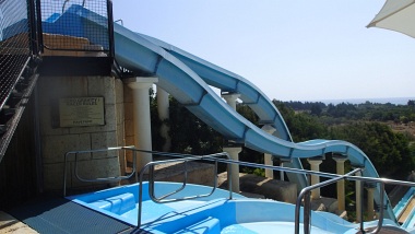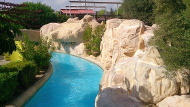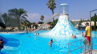 Nasza biesiada zgodnie z miejscowymi zwyczajami trwa dość długo, ale ani przez moment nie było tak, że stały puste talerzyki, te wyjedzone kelnerzy bardzo szybko wymieniali na nowe - odnosiłem wrażenie, że ta uczta nigdy się nie skończy, a jeśli nawet, to wyznacznikiem końca będzie decyzja przejedzonego klienta, a nie limit dań... Samo jedzenie cypryjskie jest smaczne i bardzo smaczne, wiekszość dań, nawet jeśli była podobna z wyglądu do polskich, to za sprawą użytych przypraw różniła się w smaku. Ten smak przypadł mi do gustu. A rachunek? Niecałe 100 euro. Za 4 osoby, więc bardzo przyzwoicie. Ostatniego dnia pobytu, kiedy już właściwie siedzieliśmy na walizkach, przyszedł nam do głowy pomysł, żeby podskoczyć na parę godzin do miejscowego parku wodnego. Aquaparków na Cyprze jest parę i chociaż zazwyczaj w naszych podróżach nie uwględniamy takich atrakcji, to tym razem zrobiliśmy wyjątek. Aquapark Afrodyta leży w Pafos nieco na południe od centrum miasta. Jakie atrakcje oferuje park możemy zobaczyć pod tym linkiem, więc nie będę ich opisywał, powiem tylko, że starczą na parę godzin zabawy, a niektóre, np. Zero Gravity, są naprawdę niezłe. Park nie jest duży, ale kiedy tu jesteśmy jest też mało ludzi, więc się tego nie odczuwa - przypuszczam jednak, że w szczycie sezonu może być jednak tłoczno. Parę zdjęć jak to miejsce wygląda od środka zamieszczam poniżej.